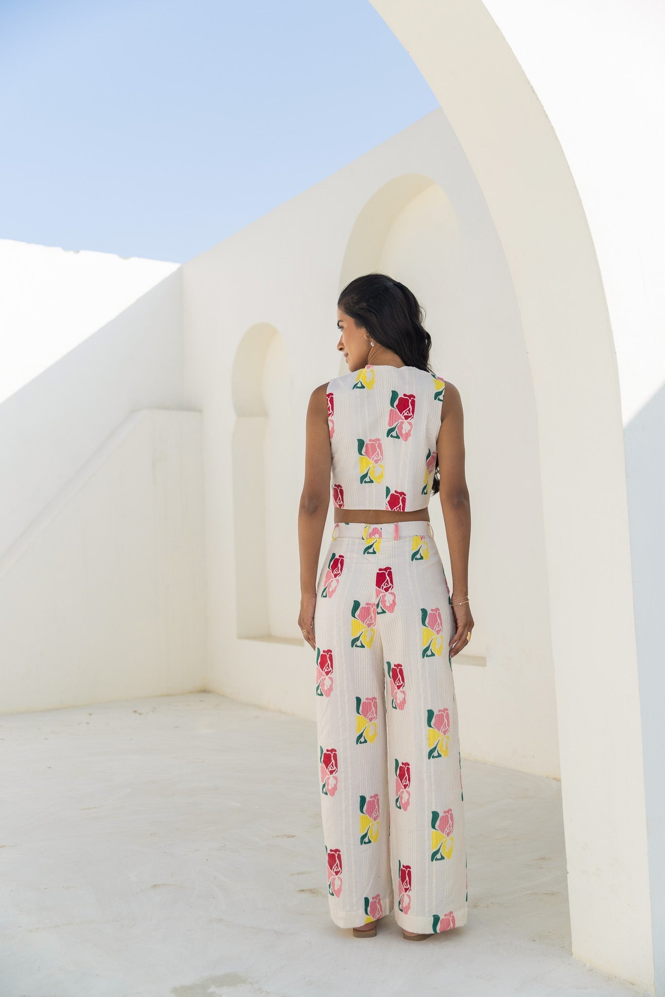 Embrace effortless charm with the Mini Waist Co-Ord Set, a playful yet sophisticated ensemble designed for the free-spirited fashionista ???Ÿƒ??. Crafted from 100% breathable cotton ???¨ and hand screen-printed with vibrant floral motifs ????, this set is perfect for sunny brunches, vacation strolls, or a chic day out. The structured cropped waistcoat with wooden button details pairs beautifully with high-waisted relaxed pants, offering a timeless yet modern look.