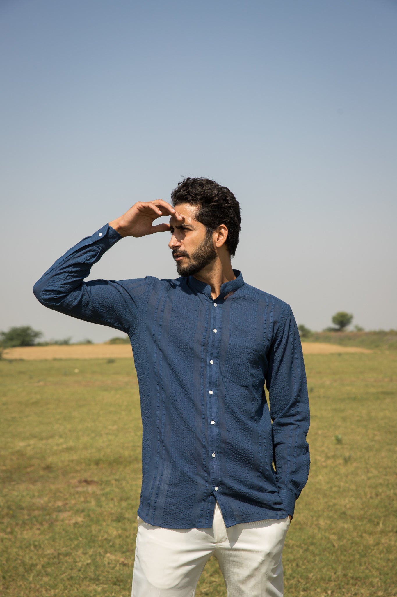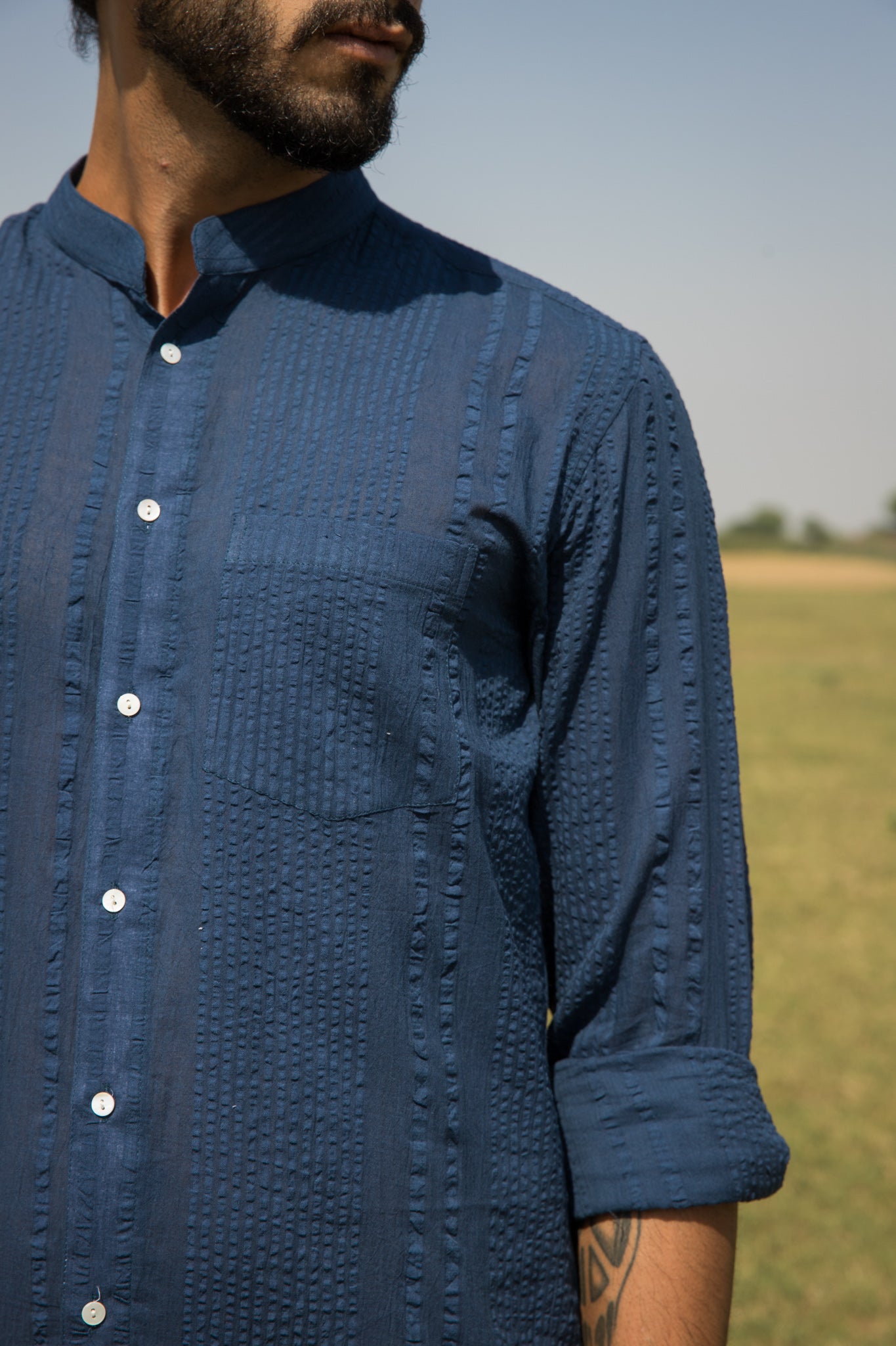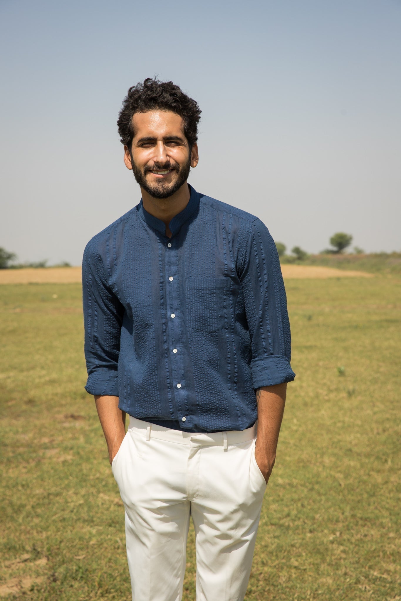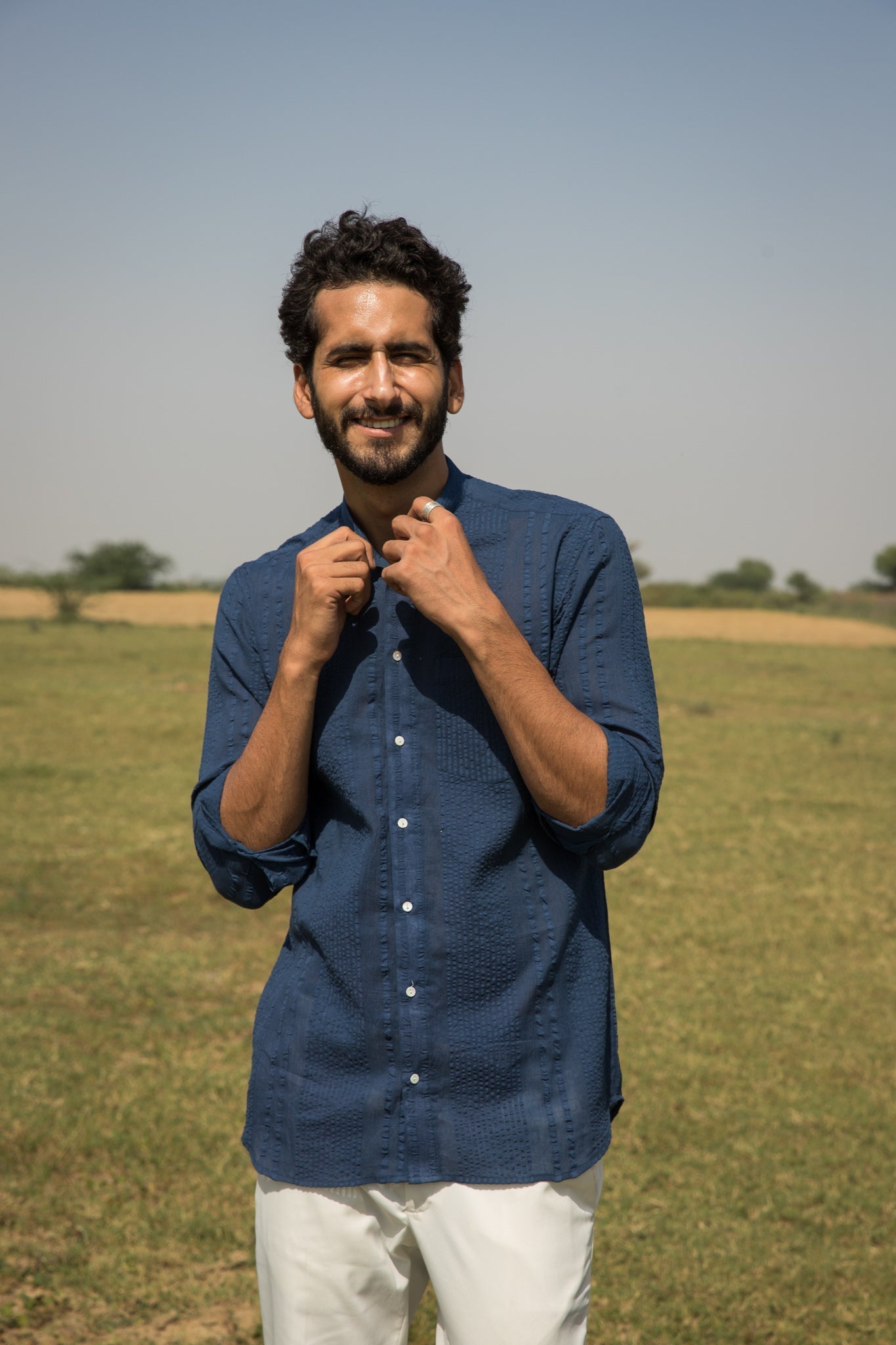Our Alyssa shirt arrives on the scene in blue-dyed dobby cotton.?ÿ