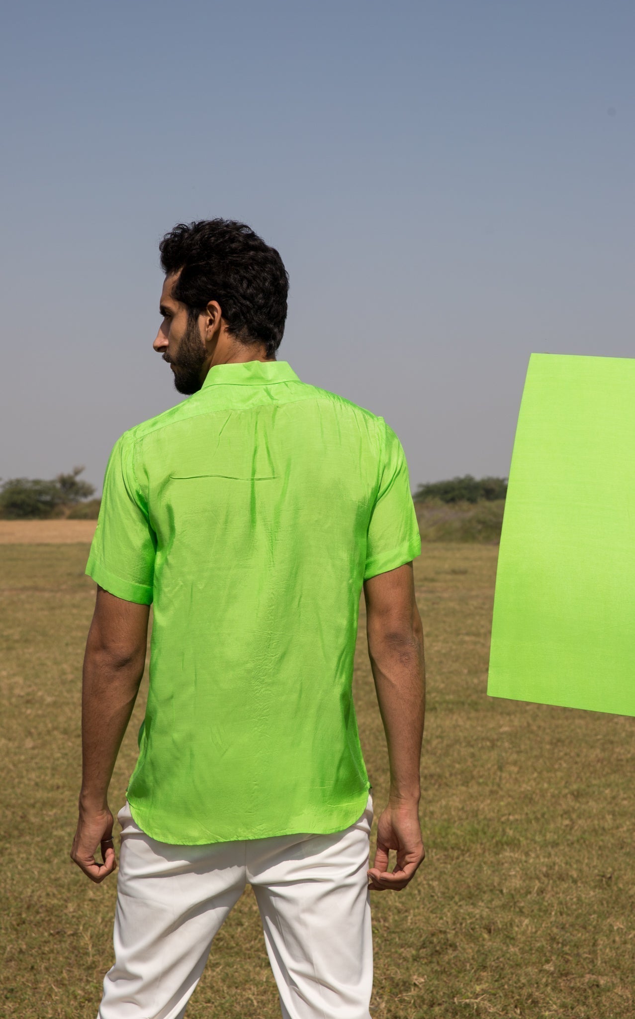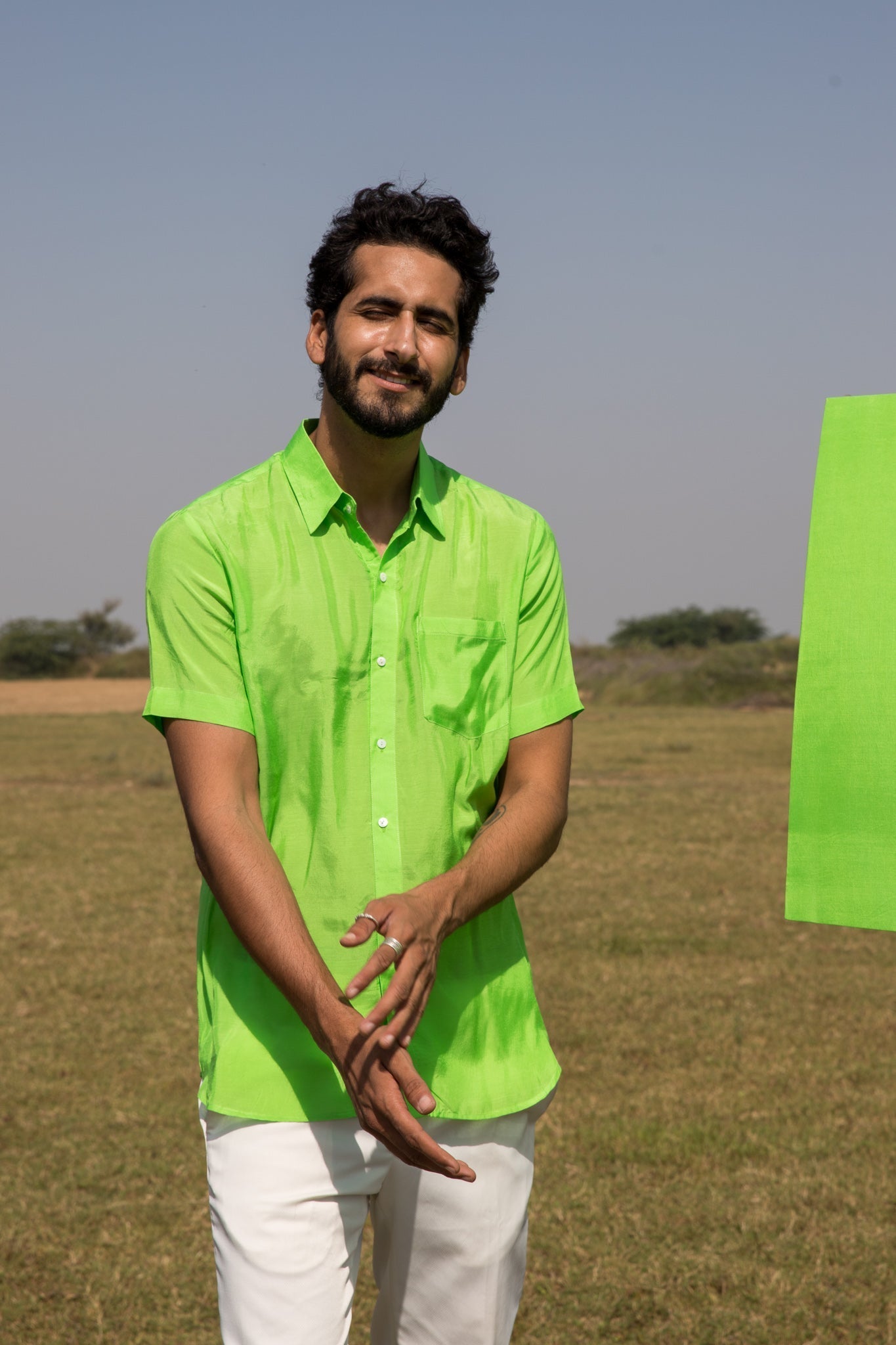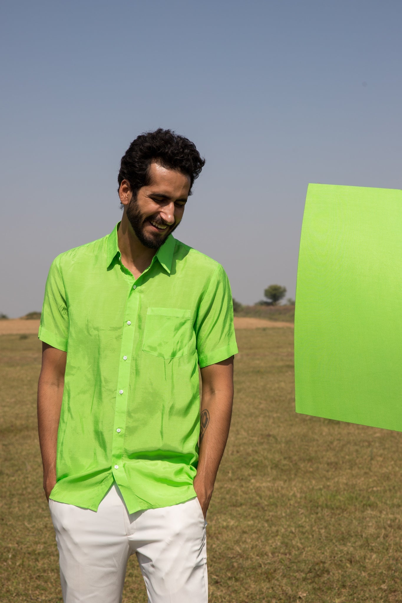 this shirt is crafted in the hue of green on muslin silk.?ÿ