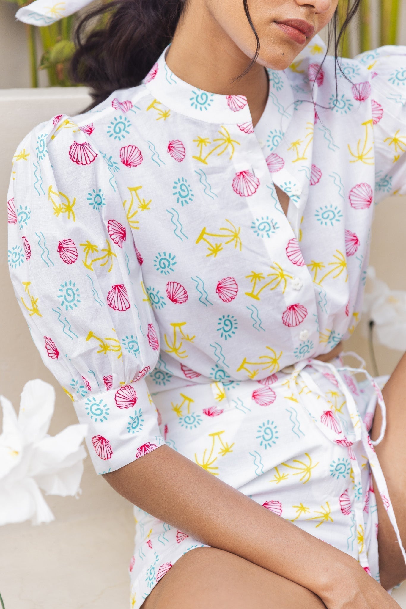 Get ready to whirl into your next vacation in style with our Melon Whirl Co-ord Set! This versatile set includes trendy shorts and a cute crop top, both featuring our exclusive print. Perfect for endless vacation possibilities!