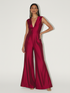 Design: This show-stopping jumpsuit features a sleek sleeveless silhouette complemented by a daring and chic deep V-neckline. The expertly tailored bodice gracefully flows into dramatic wide-leg pants, creating a magnificent, fluid movement that's both stylish and comfortable. Its contemporary design ensures a powerful, elongating presence.