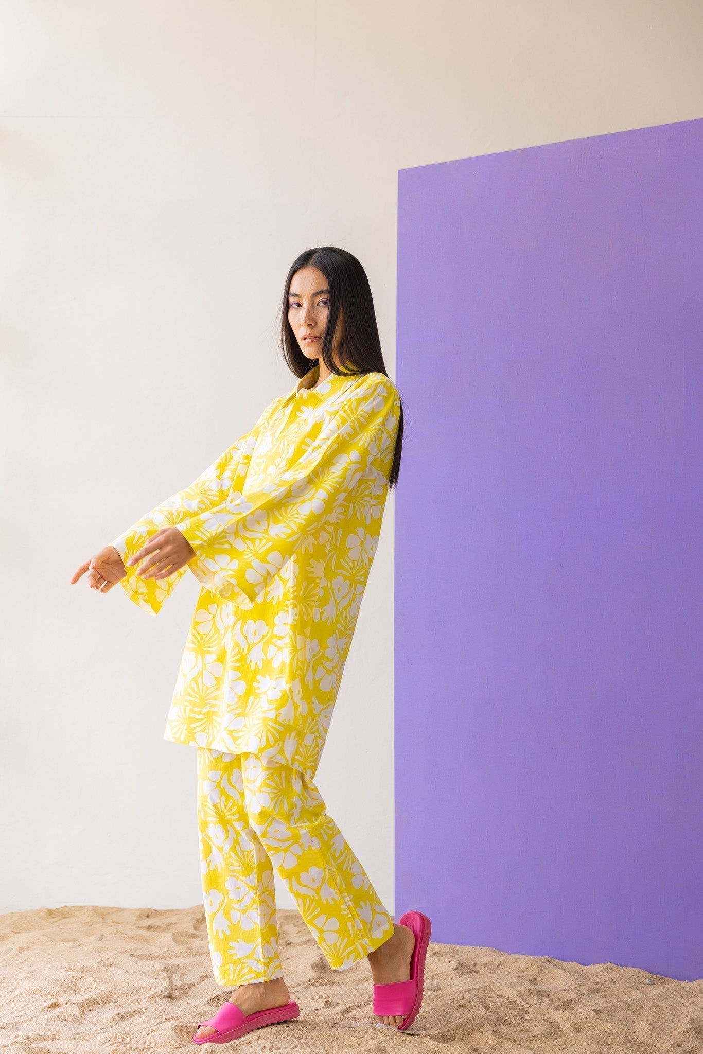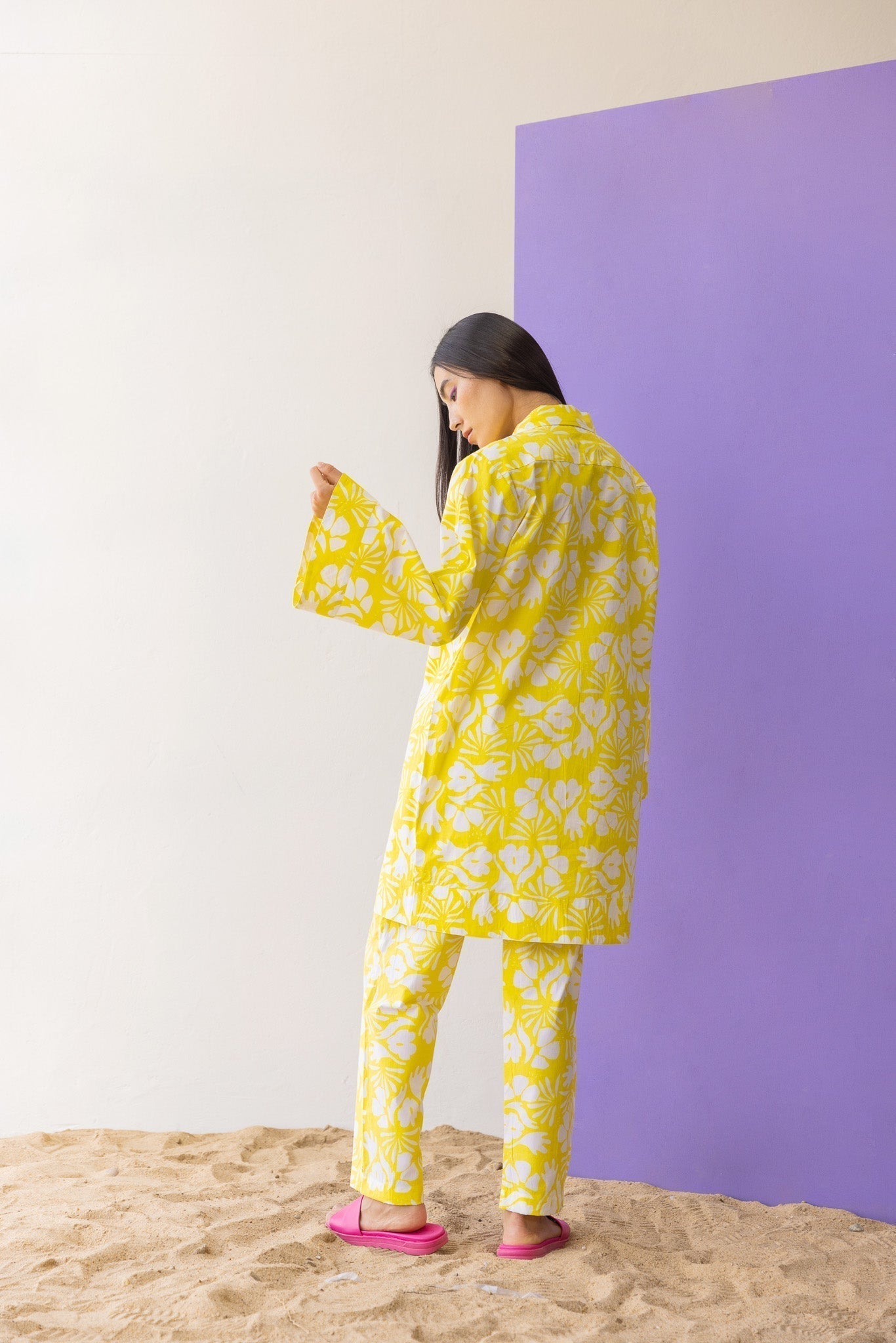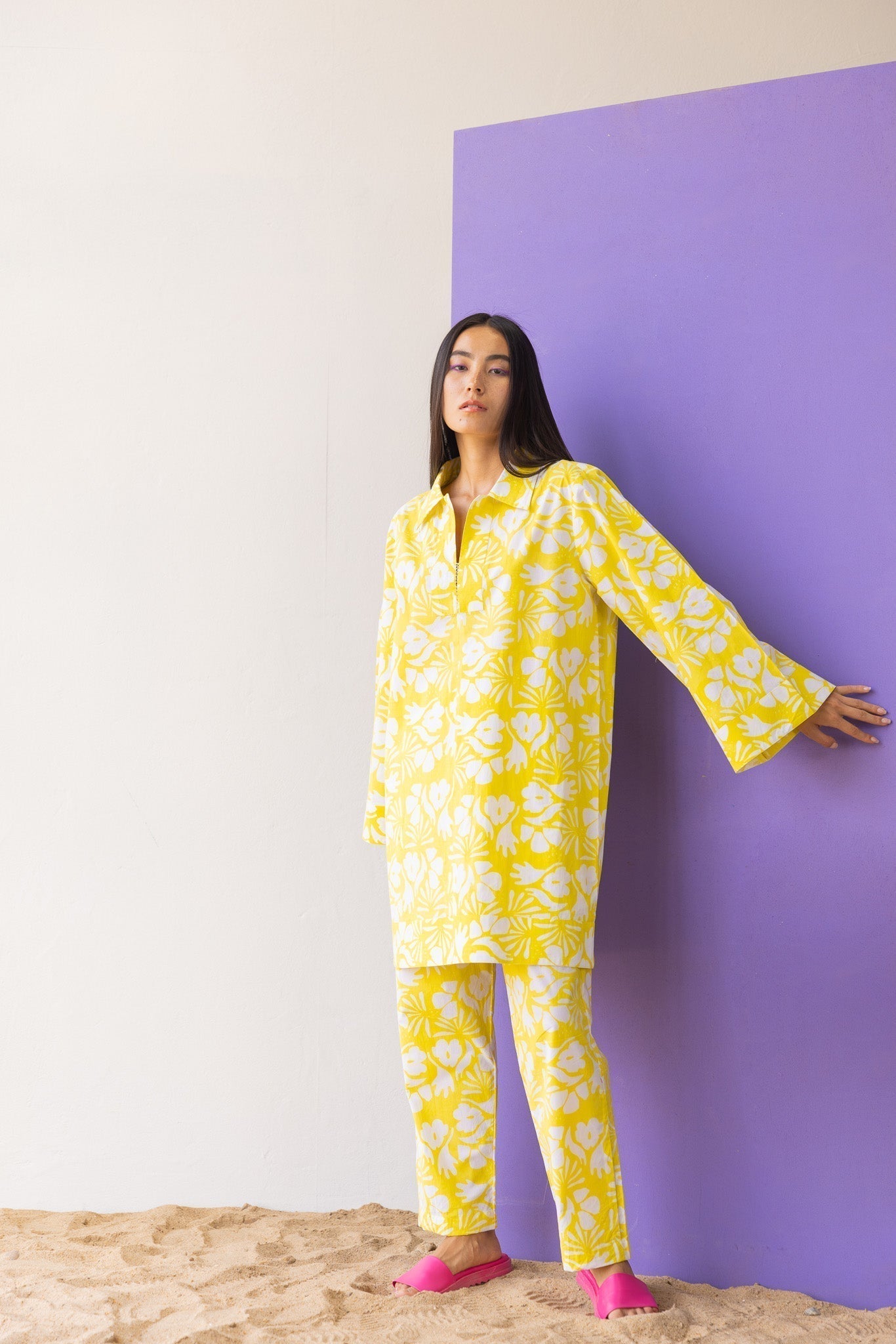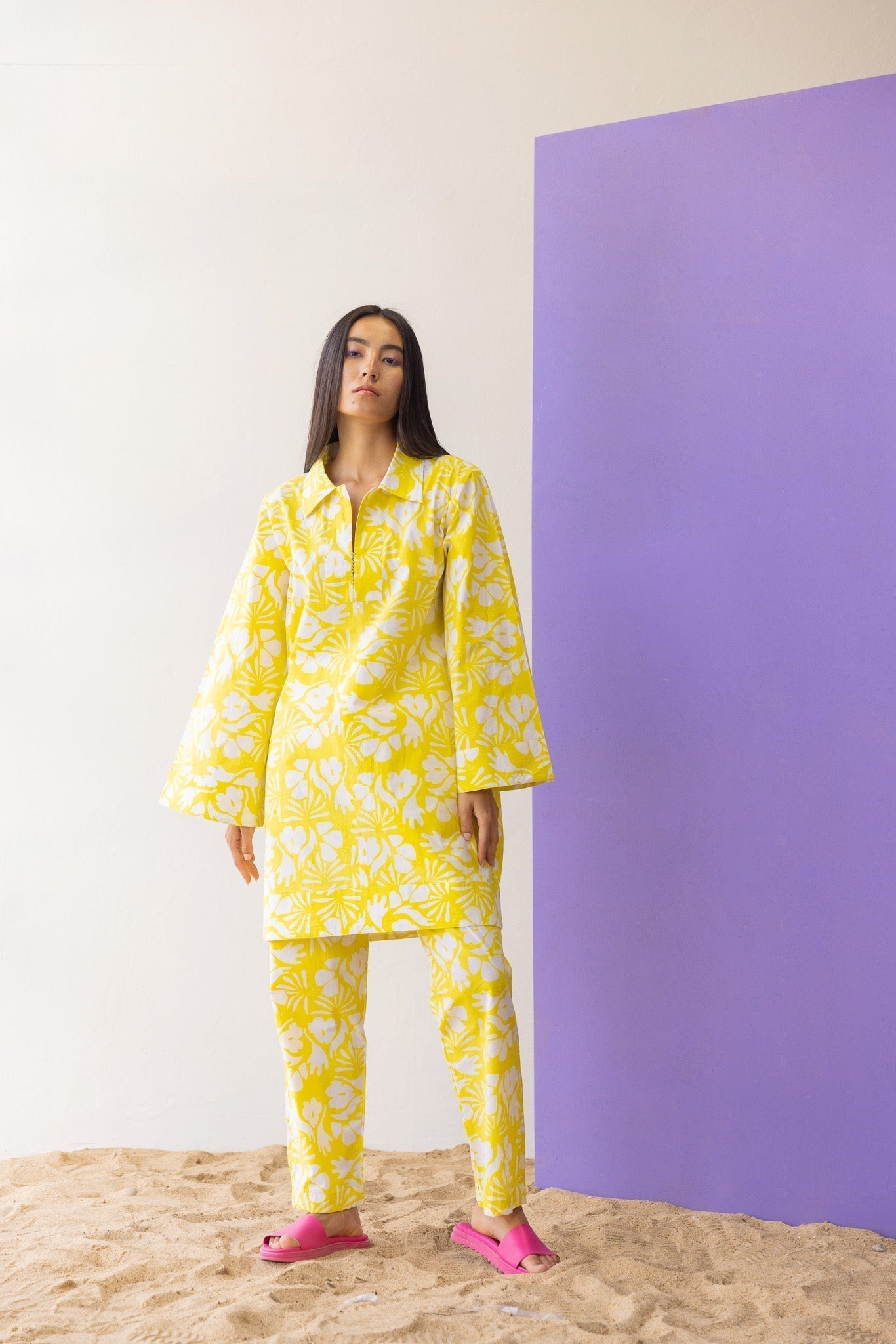 the co-ords are the thing this season, the summer favourite outfit is every eardrobe essential. Shop our Pinacolada Co-ord Set featuring a long top and a trouser for your all AM-PM situations and everything in between. The top features trumpet sleeves, cute neckline with cross detailing and a relaxed fit.?ÿ