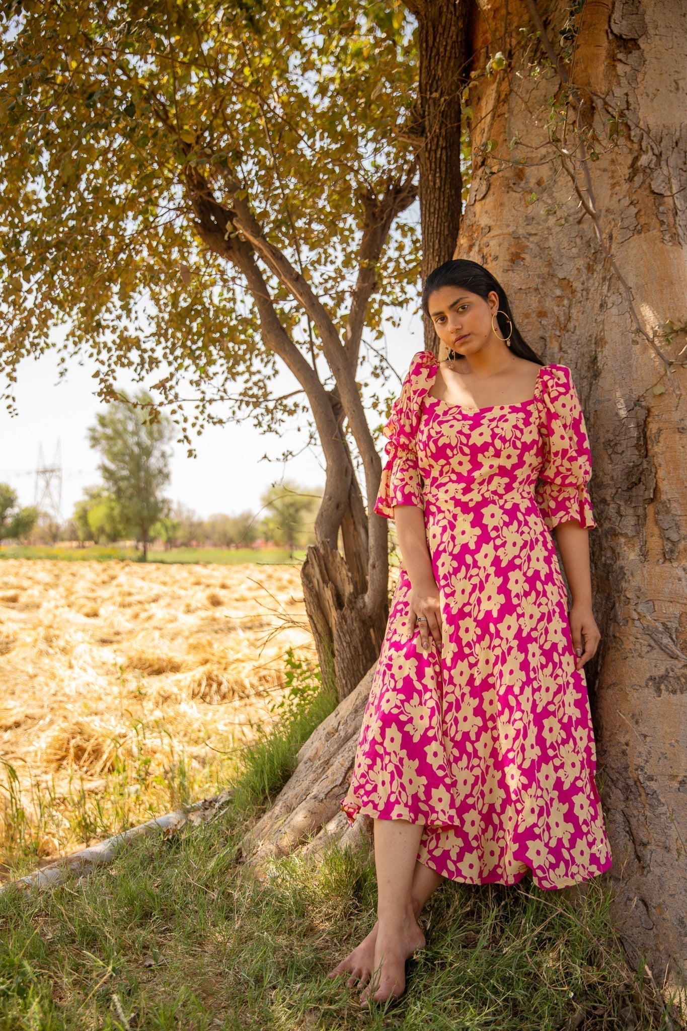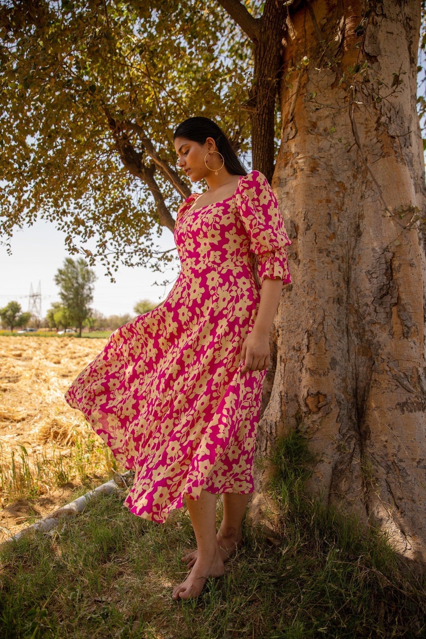 It brings that joyful vibe you already love, adding unique details like the print itself and the cozy, fitted bodice. Its flowy skirt is ready to follow your confident moves while having fun all around, and you can invite standout boots and accessories to this whatever-the-season-ready combo!