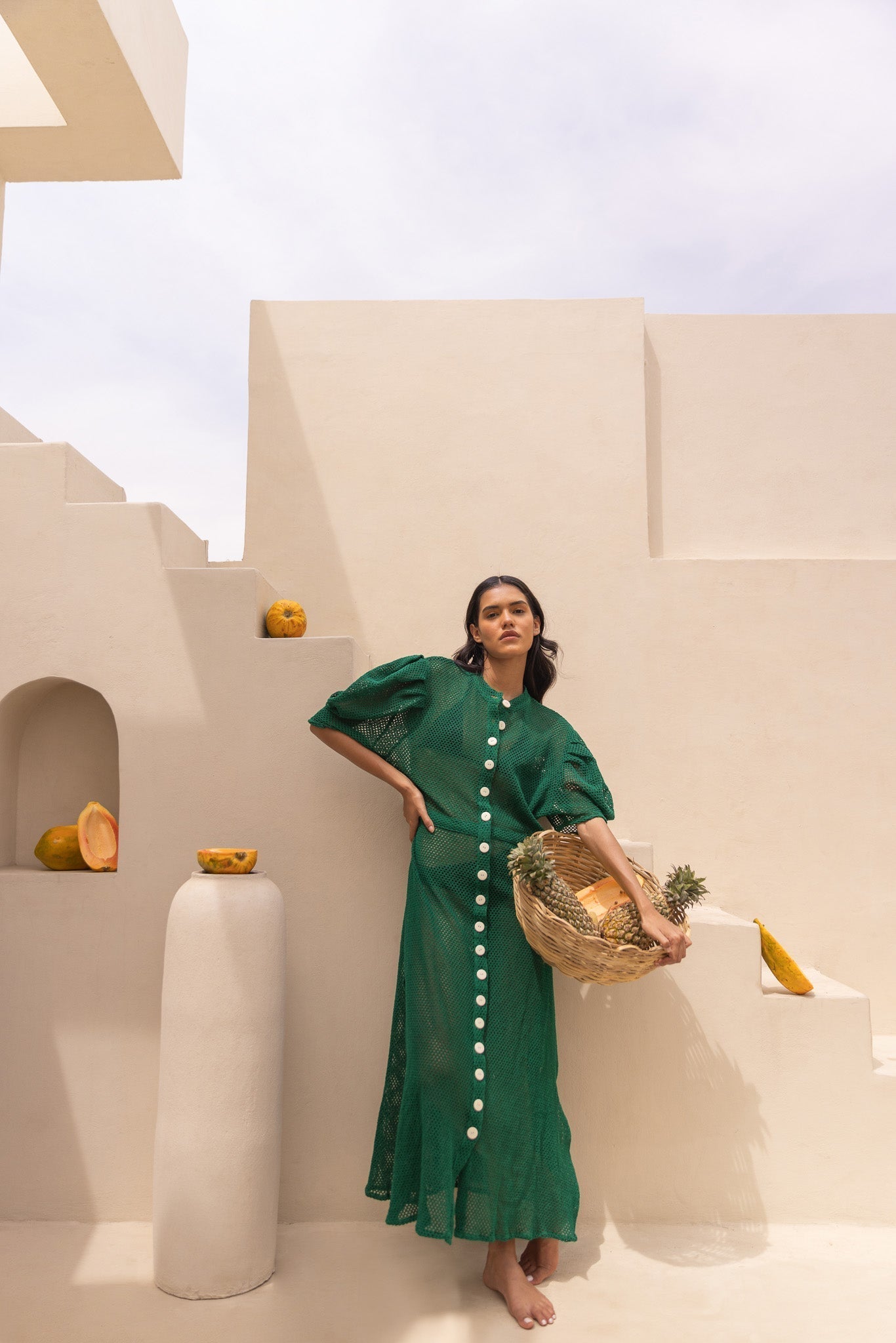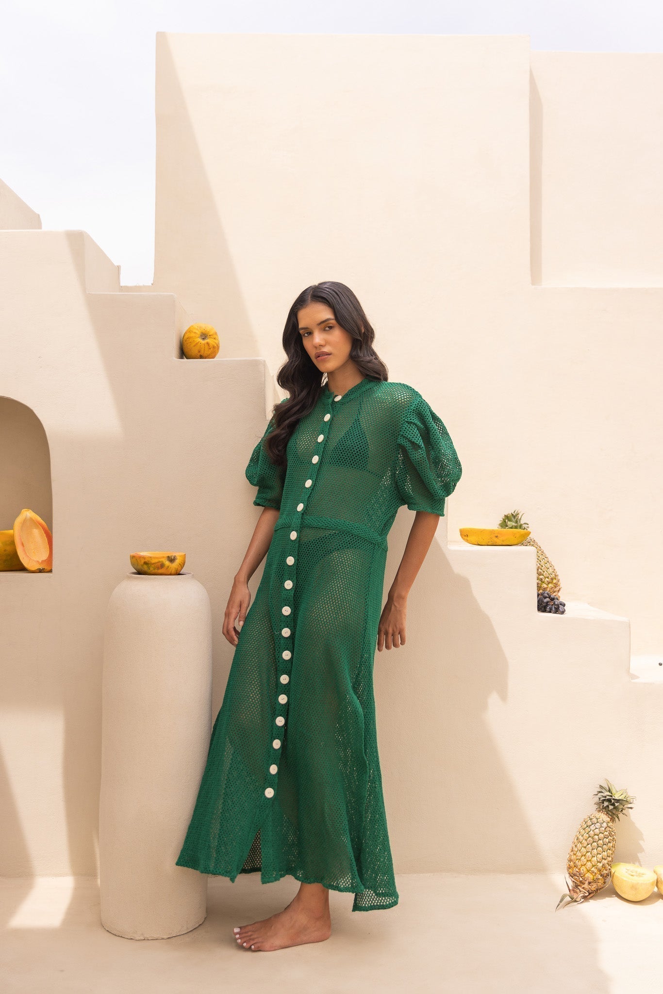 Looking to turn heads at the beach or by the pool? Say aloha to our Pineapple Pop Beach Dress ƒ?? the ultimate sexy cover-up you've been craving! In the juiciest green hue, crafted from pure cotton with a tantalizing hollow honeycomb pattern, this maxi-style shirt dress is a showstopper. With a sultry side slit, it's guaranteed to give you all the sexy feels while keeping you cool under the sun. Get ready to sizzle in style, beach babe! ??��????
