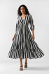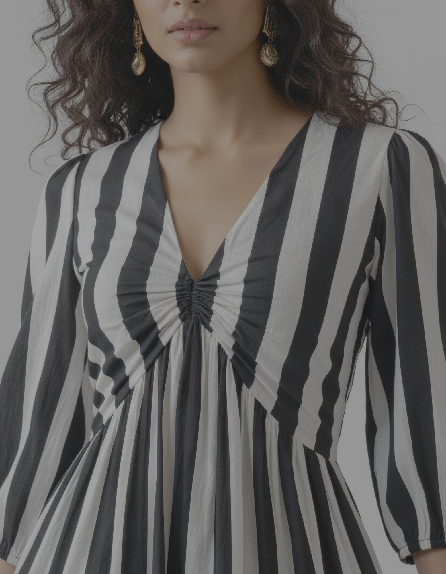 Step out in style with our must-have Black & White Striped Tiered Dress! This eye-catching midi features a flattering V-neck and charming 3/4 puff sleeves, all adorned with classic black and white stripes. The playful tiered skirt adds beautiful volume and movement, making it a joy to wear. Perfect for those who love to stand out, this dress combines comfort with a high-fashion aesthetic.