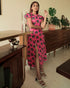 This midi-length dress with a high slit, a back cut out, and cap sleeves crafted in pure cotton and hand block printed in our exclusive print. fitted in the bodice and waist with a relaxed-fitting skirt. It gives you a pretty good balance of comfort and shape.?ÿ
