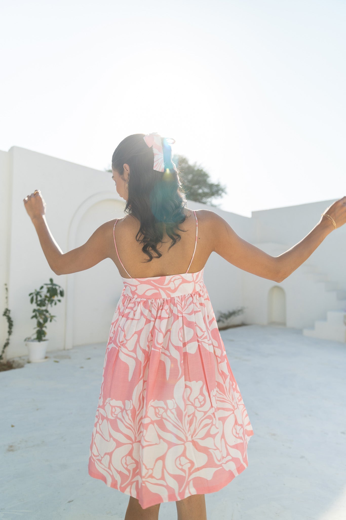 The Pookie Mini Dress is your go-to outfit for a dreamy, feminine look thatƒ??s both playful and elegant. Designed in a soft pink and white hand screen-printed abstract pattern, this dress is made from luxurious muslin silk, ensuring a lightweight, airy feel that drapes beautifully. Its bubble silhouette and delicate bow-tie bust detail make it a statement piece thatƒ??s perfect for summer outings, vacations, and special occasions.