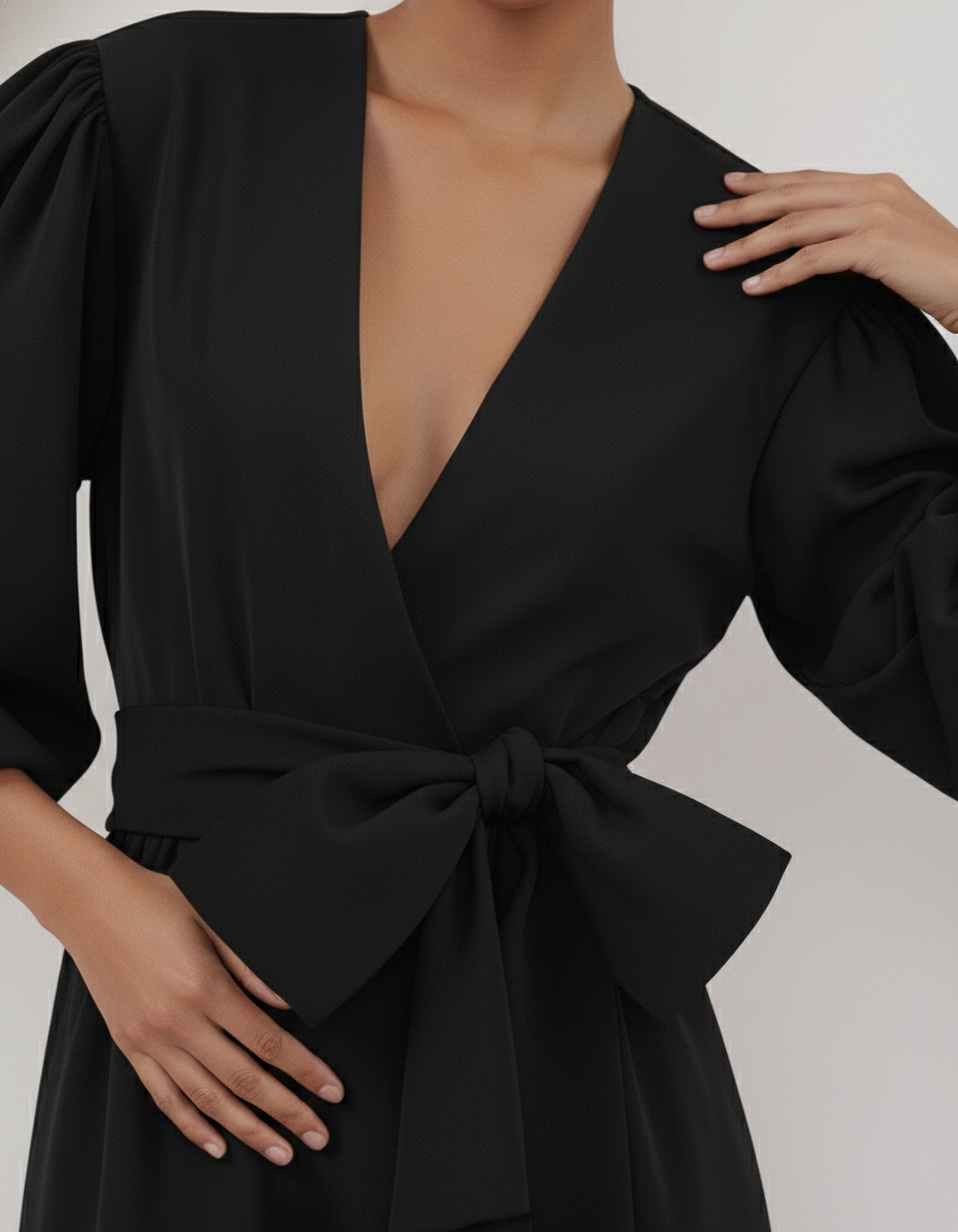 With a plunging V-neckline and a timeless midi length, this wrap dress is the ultimate fusion of comfort and high-impact style. Whether you are stepping into a boardroom or a gala, this is your era.
