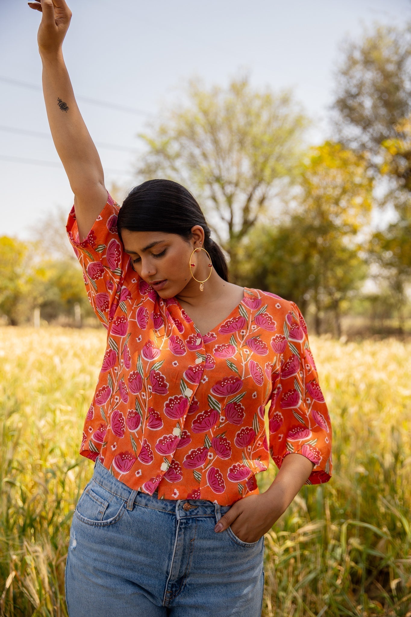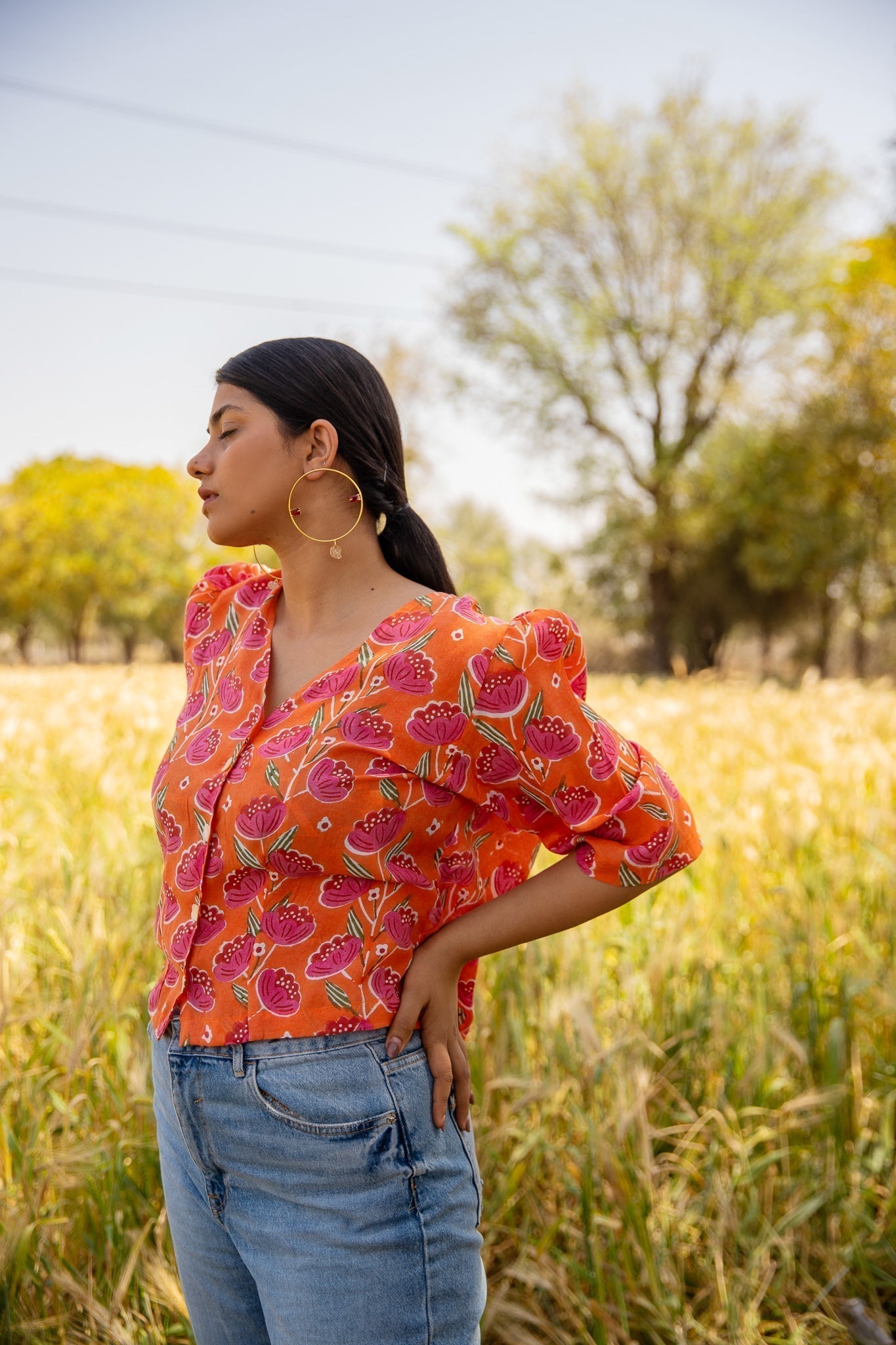 After the great response on our Starburst Shirt, hereƒ??s another print featuring V-neckline, puff sleeves. This go-to shirt in the hues of red will be your new fave.