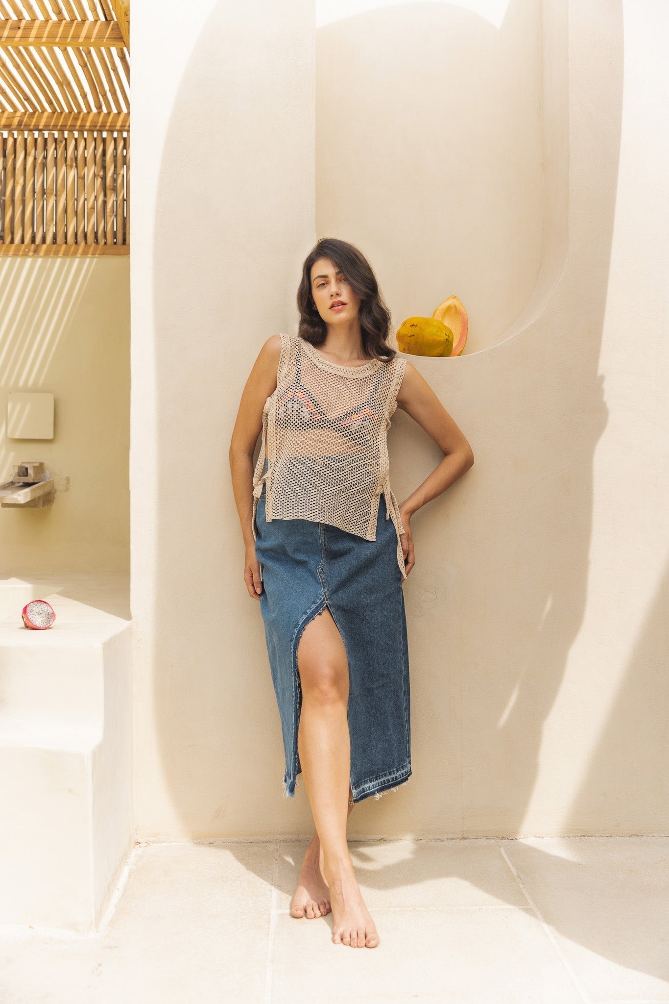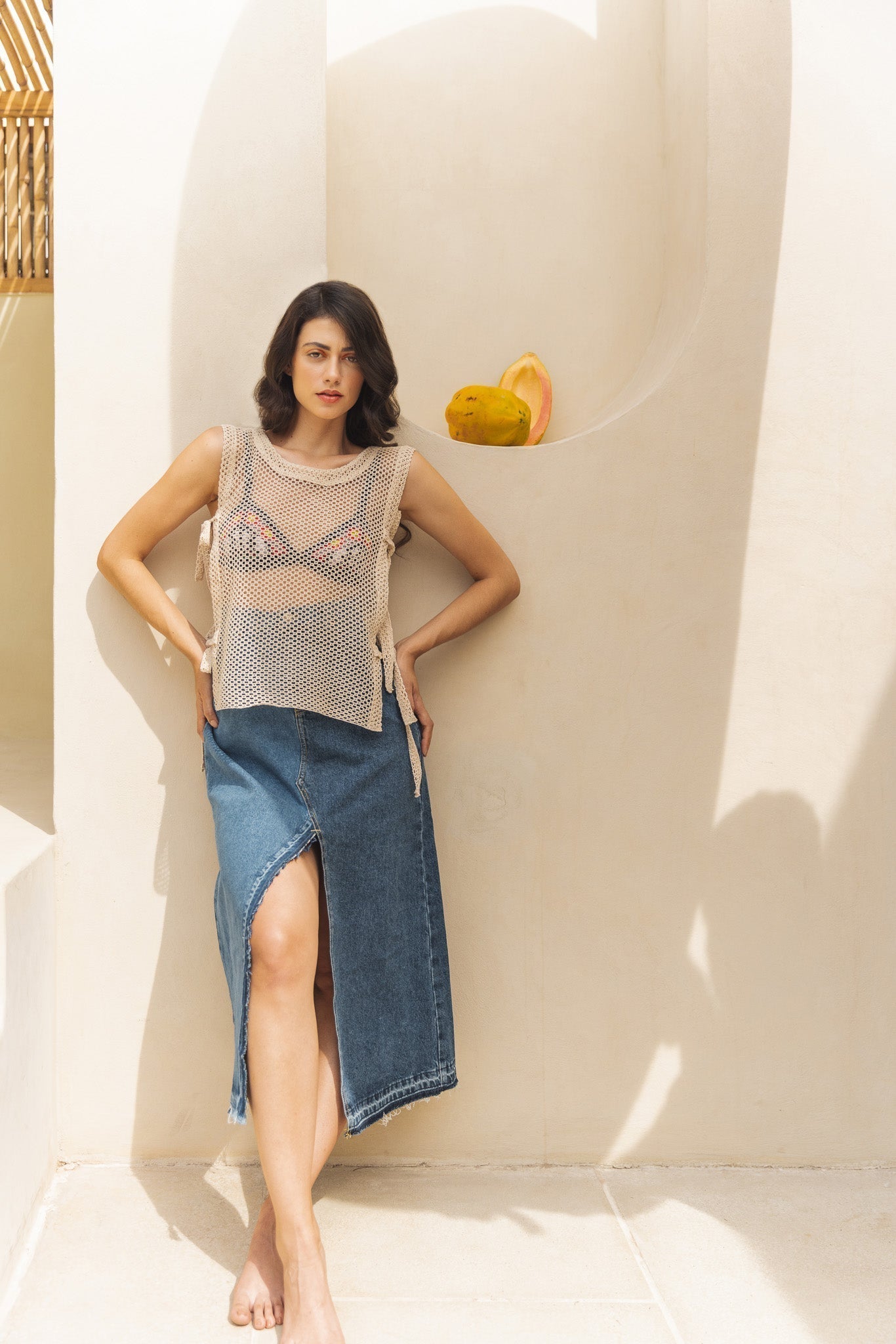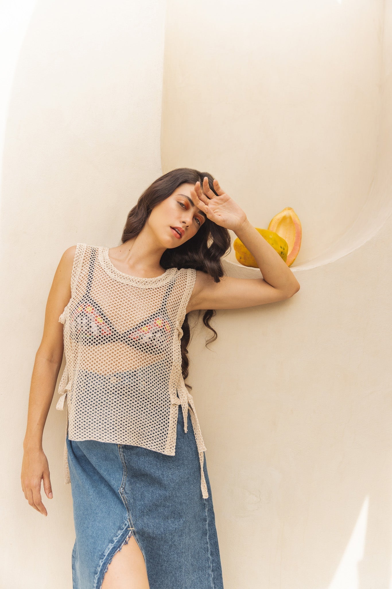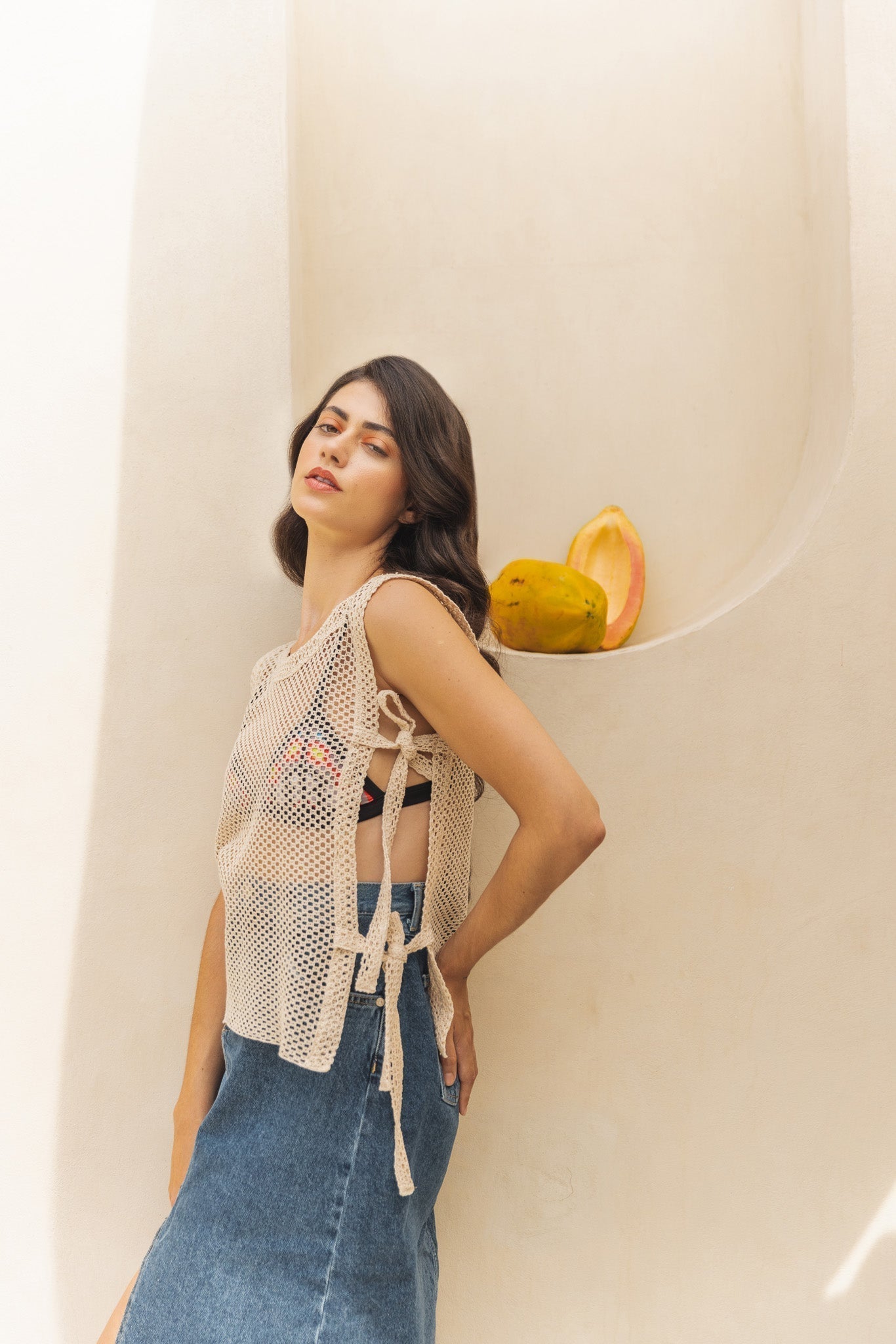 Hey there, beach babe! Searching for a top that screams "vacay vibes" with a side of sass? We've got you covered! Literally, but with a twist ƒ?? our top with sides open is your ticket to breezy chic. Crafted with a touch of paradise in mind, this piece is perfect for beach cover-ups or flaunting your style in the city heat. Handcrafted with a flirtatious hollow honeycomb pattern in pure cotton, it's a definite head-turner. Embrace the sunshine and let your style shine! ????ƒ??‹?�