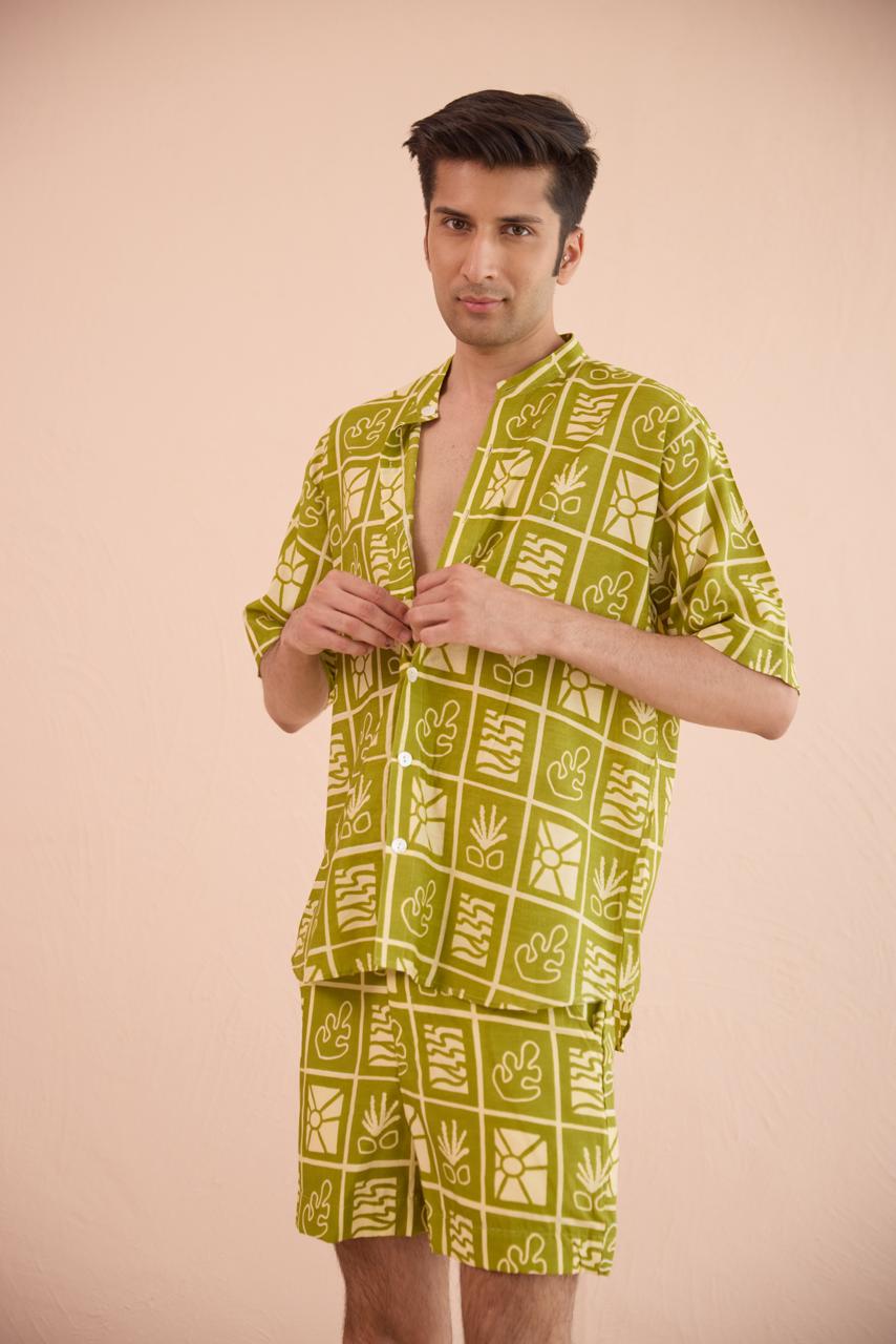 Dive into summer with our Green Lush Shorts crafted from luxurious muslin silk! These playful bottoms feature an eye-catching print that pops against the vibrant green backdrop. Style them as part of a coordinated set or pair with a plain beige shirt for a breezy, effortless look. Perfect for those sunny days when you want to make a statement without saying a word!