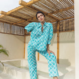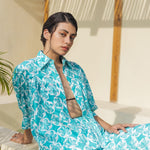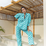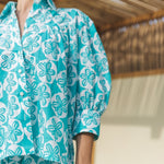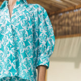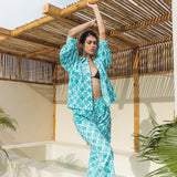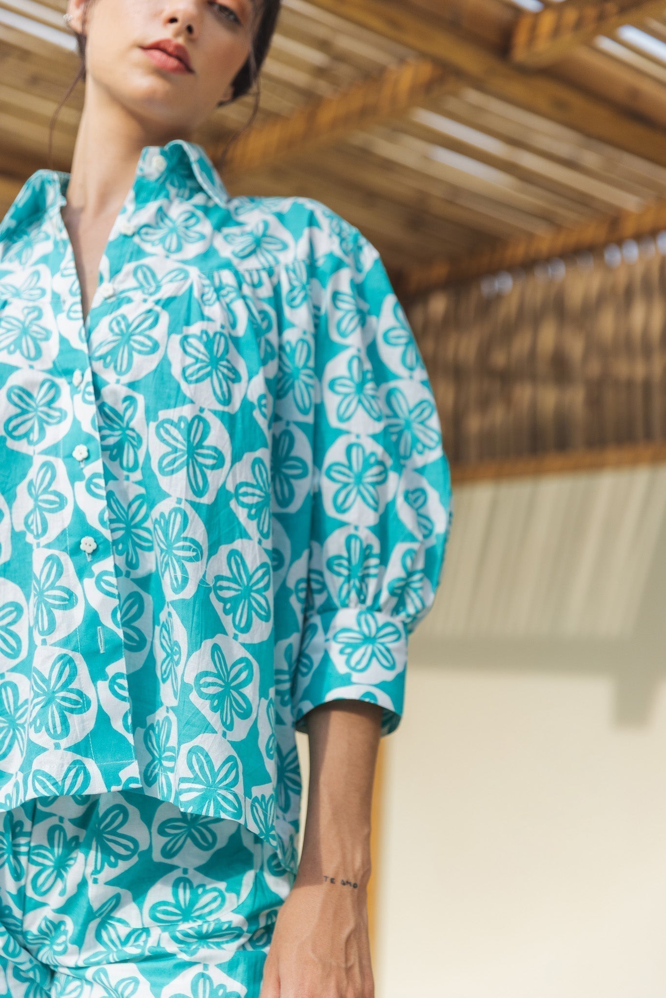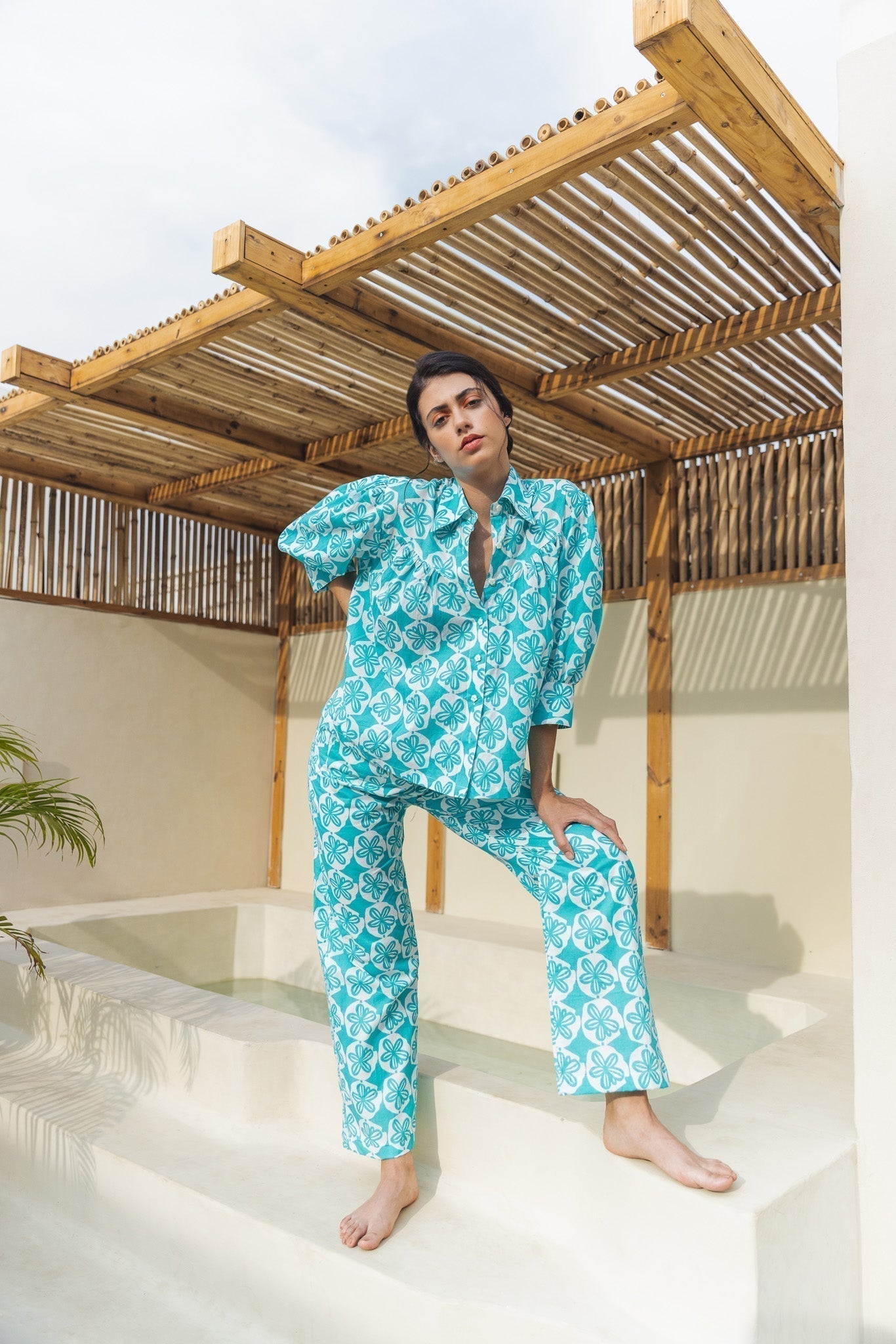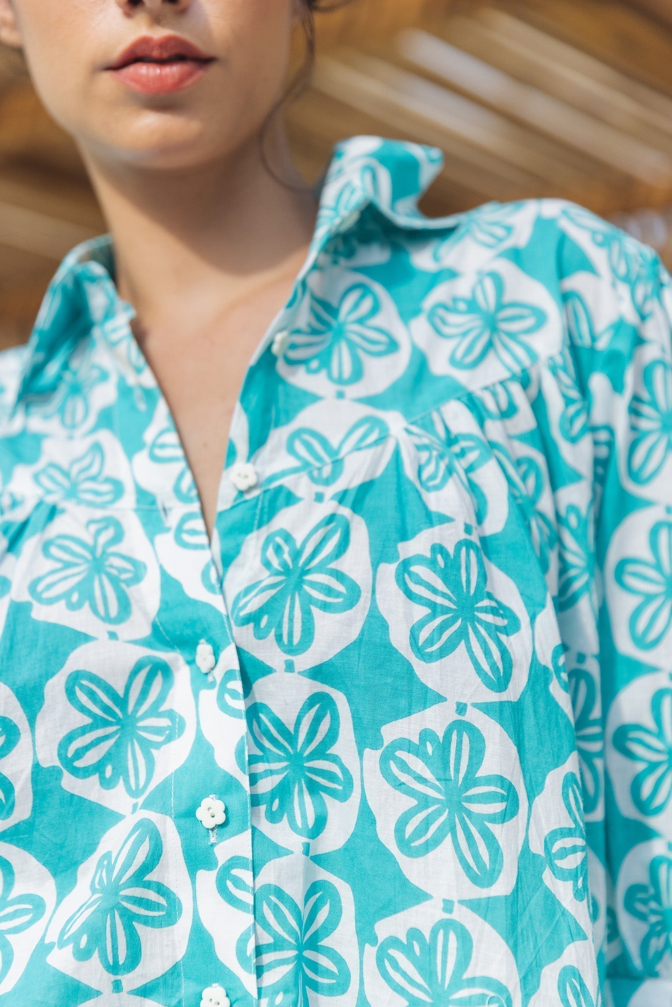Ride the waves of fashion with our Aqua wonder Co-ord! Made from pure cotton, this playful set features puff sleeves, a floral buttons, and an elasticated waist for ultimate comfort. Dive into style with the beautiful aqua blue shade. Surf's up!