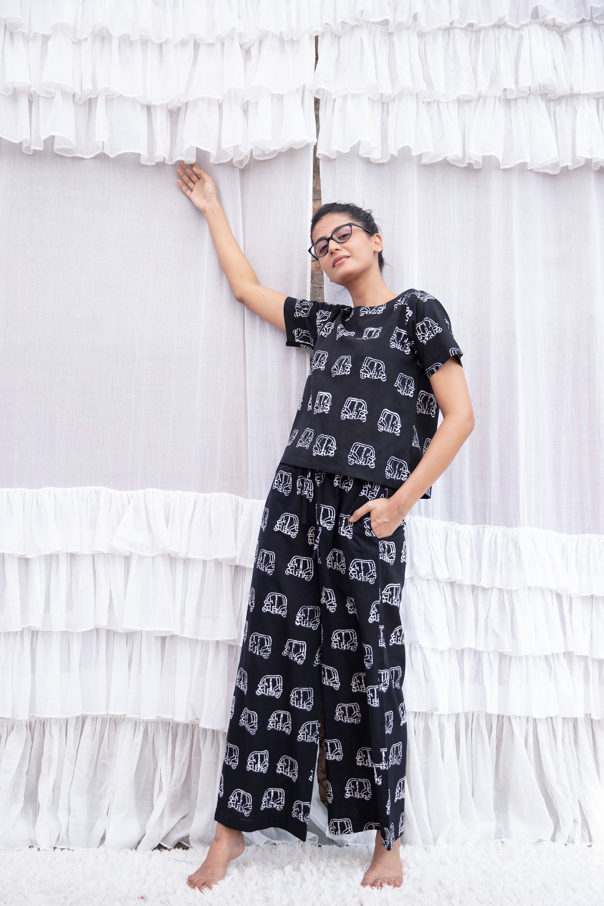 this set is crafted in our best selling hand block printed auto fabric, it includes shirt and pyjama, wear this comfortable set all day while doing WFH.?ÿ