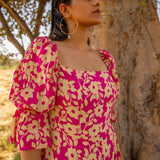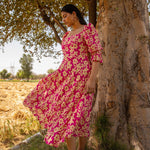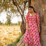 It brings that joyful vibe you already love, adding unique details like the print itself and the cozy, fitted bodice. Its flowy skirt is ready to follow your confident moves while having fun all around, and you can invite standout boots and accessories to this whatever-the-season-ready combo!