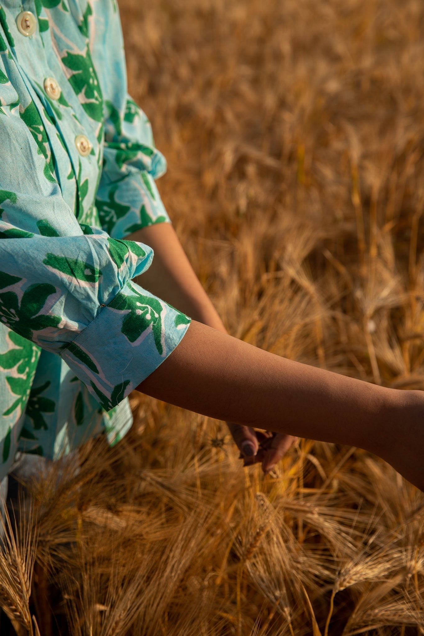 Make a romantic-yet-cool statement all season long <3 The Faith Blouse is here to embrace you and your cool bottoms wherever youƒ??re following the sun! It features pleat detailing, puffed sleeves, versatile buttons, and the hand block print to fall head-over-heels for.