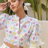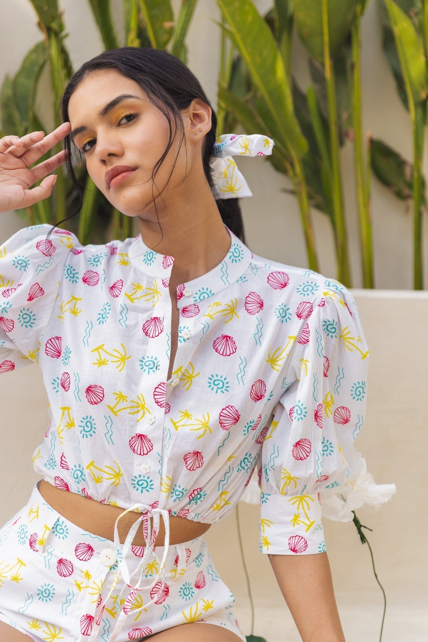 Get ready to whirl into your next vacation in style with our Melon Whirl Co-ord Set! This versatile set includes trendy shorts and a cute crop top, both featuring our exclusive print. Perfect for endless vacation possibilities!