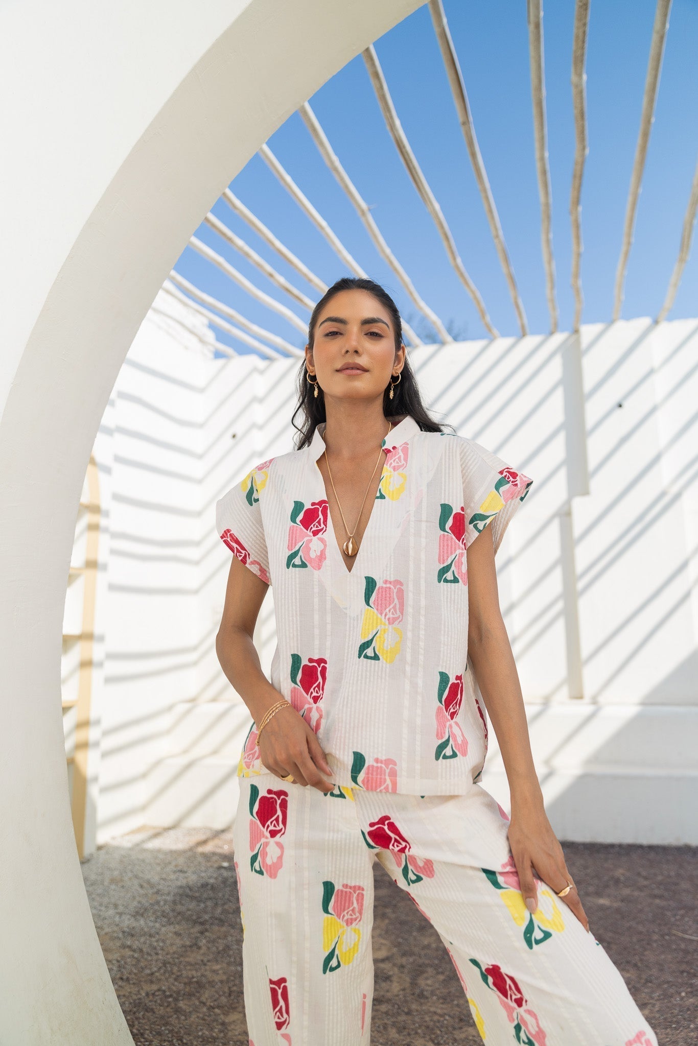 This white hand-screen printed seersucker co-ord set is where comfort meets statement style! ???Ÿ Made from airy, textured seersucker and splashed with vivid, playful prints, it's a total head-turner. Whether you're off to brunch, a weekend getaway, or just feeling extra fabulous, this set is your go-to for effortless chic. ????????