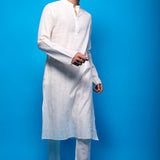 this long kurta is hand crafted in embossed embroidery white fabric. get ready this festive season in this kurta and pair it with our any of our Nehru Jackets to give an extra edge.?ÿ