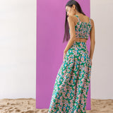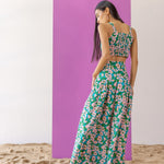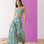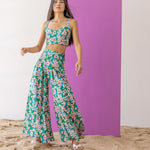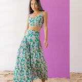 Vacay-vibe is on point! this co-ord set is sure to make your vacation outfit a steal. Handcrafted in silk and hand screen printed in our exclusive floral print. The top features smocking at the back to give that perfect fit you've been looking for and the trousers have pintucks detailing at the waist to hips to give the fit and flare look and add volume.