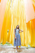 this dress is handblock printed in sapphire blue shade, handcrafted midi dress in V-neckline, frill on the sleeves and eyelets.??¨