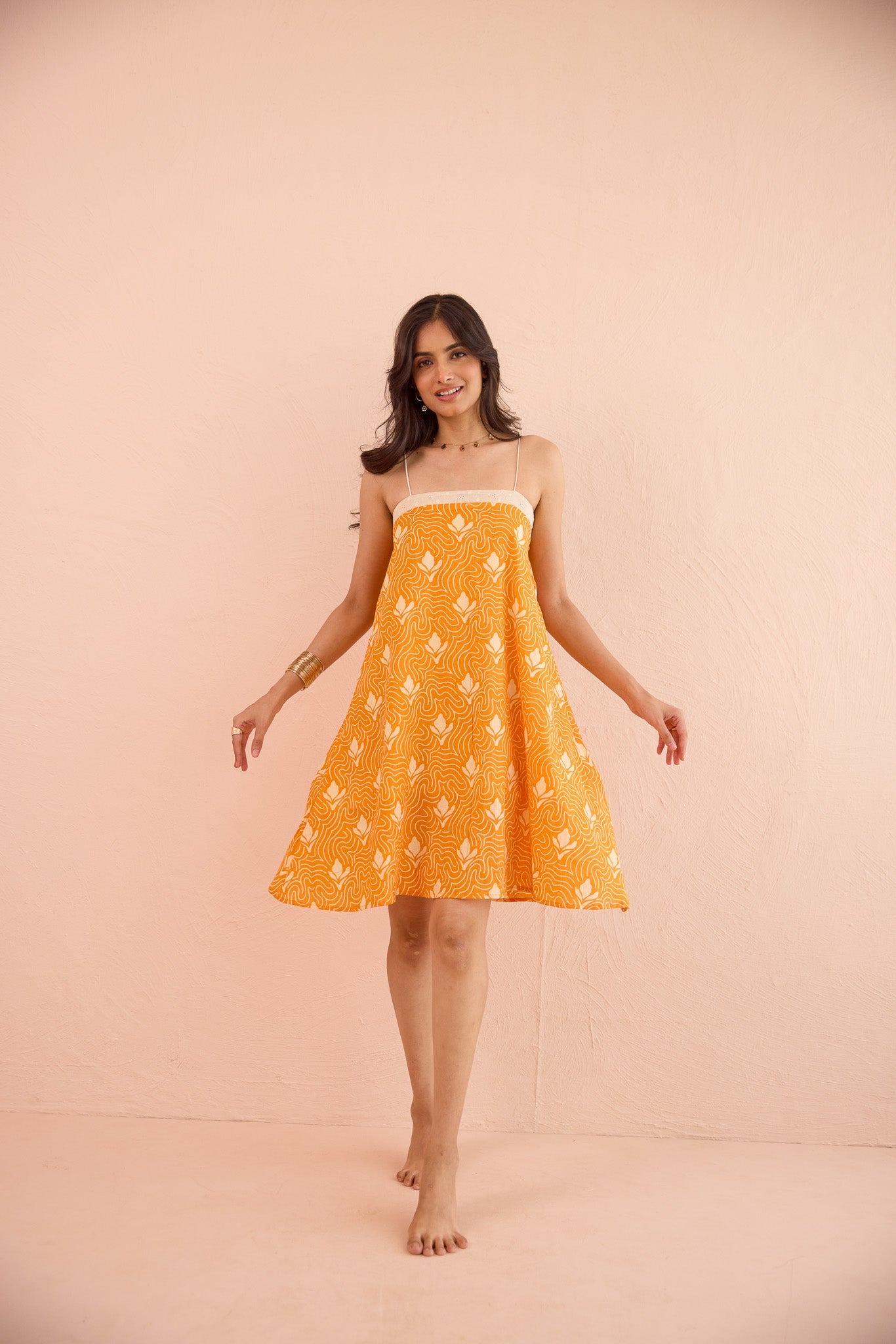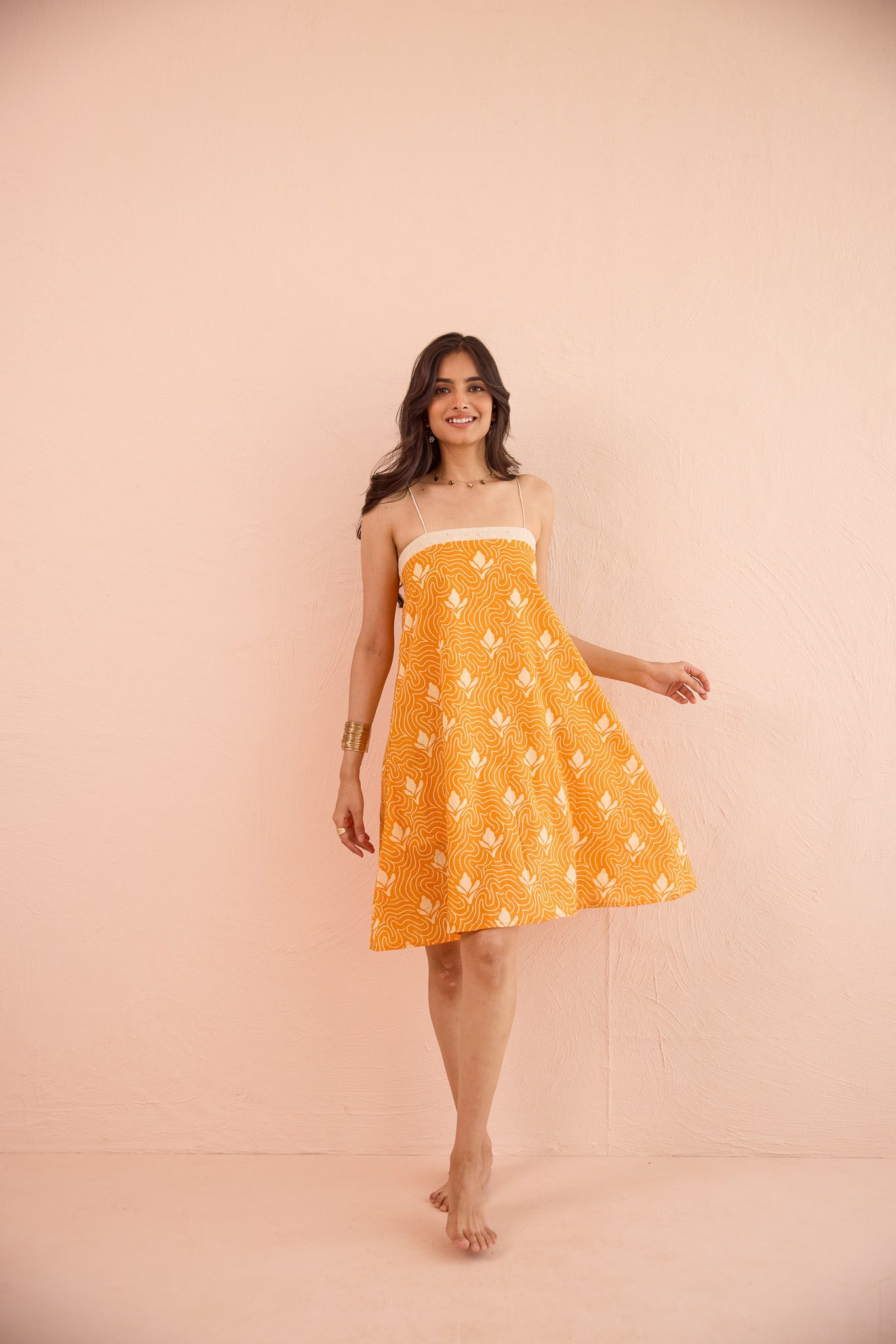 Twirl into sunshine with our Warm Sand Mini Dress! This playfully flowy piece features delicate detailing on the bodice that adds just the right touch of charm. The light mustard hue brightens any occasion, while the super flowy silhouette dances with your every move. Perfect for those days when you want to feel both carefree and utterly adorable!